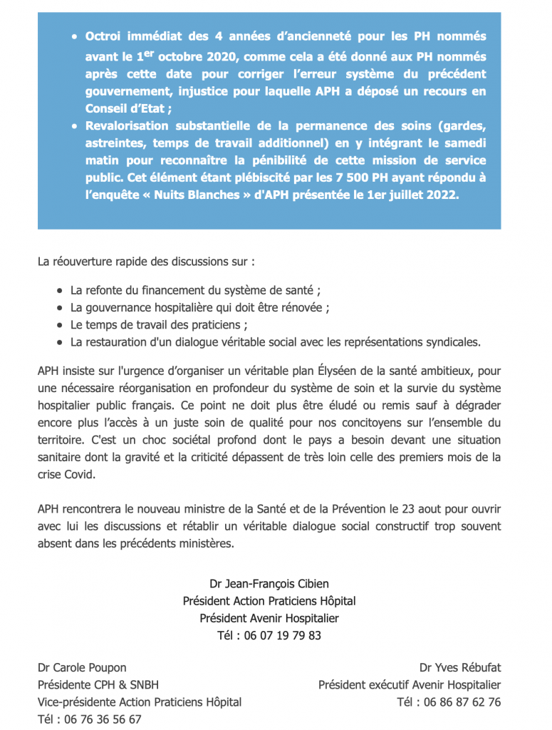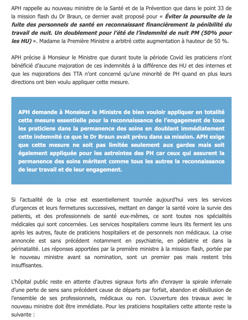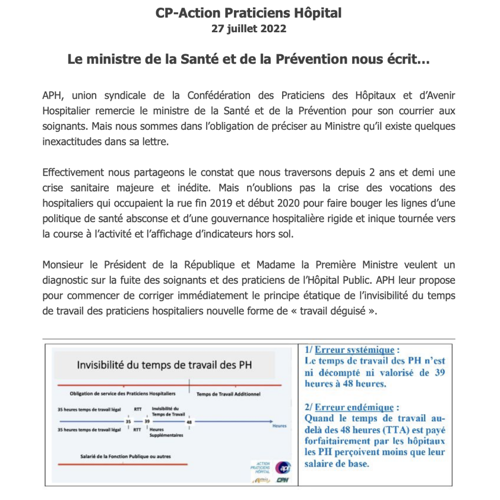 Communiqué APH : Le ministre de la Santé et de la Prévention nous écrit…