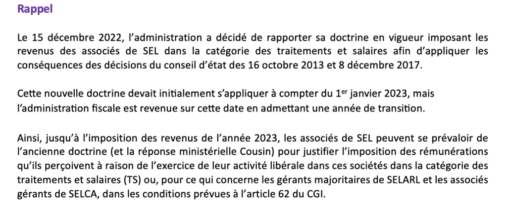 Régime d’imposition des associés de SEL à compter du 1er janvier 2024